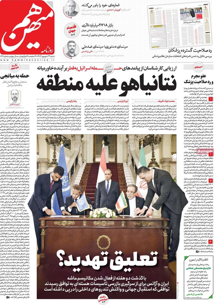 بیانات رهبرانقلاب در باره سریال موسی، سفر رئیس جمهور به اردبیل، پیامدهای حمله اسرائیل به قطر و… از تیترهای امروز مطبوعات است.