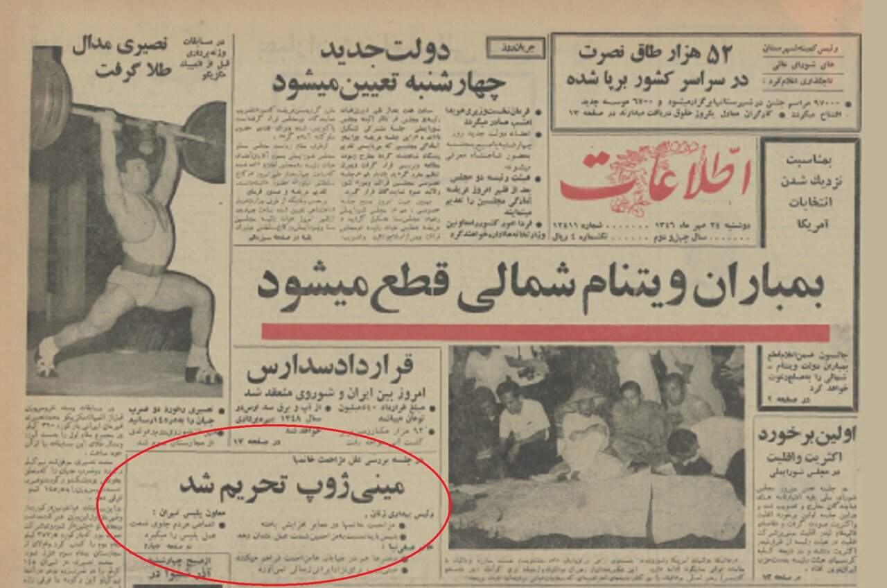 روز دوشنبه ۲۴ مهر ۱۳۴۶ دو روز پس از انتشار نتیجهی نظر سنجی مجلهی زن روز دربارهی مینیژوپ، روزنامهی اطلاعات خبری از تحریم مینیژوپ داد. این تصمیم شامگاه یکشنبه ۲۳ مهر ۱۳۴۶ در جلسهی عمومی «جمعیت بیداری زنان» [۱] در حضور معاون پلیس تهران و جمعی از افسران پلیس و شخصیتهای کشوری اعلام شده بود.