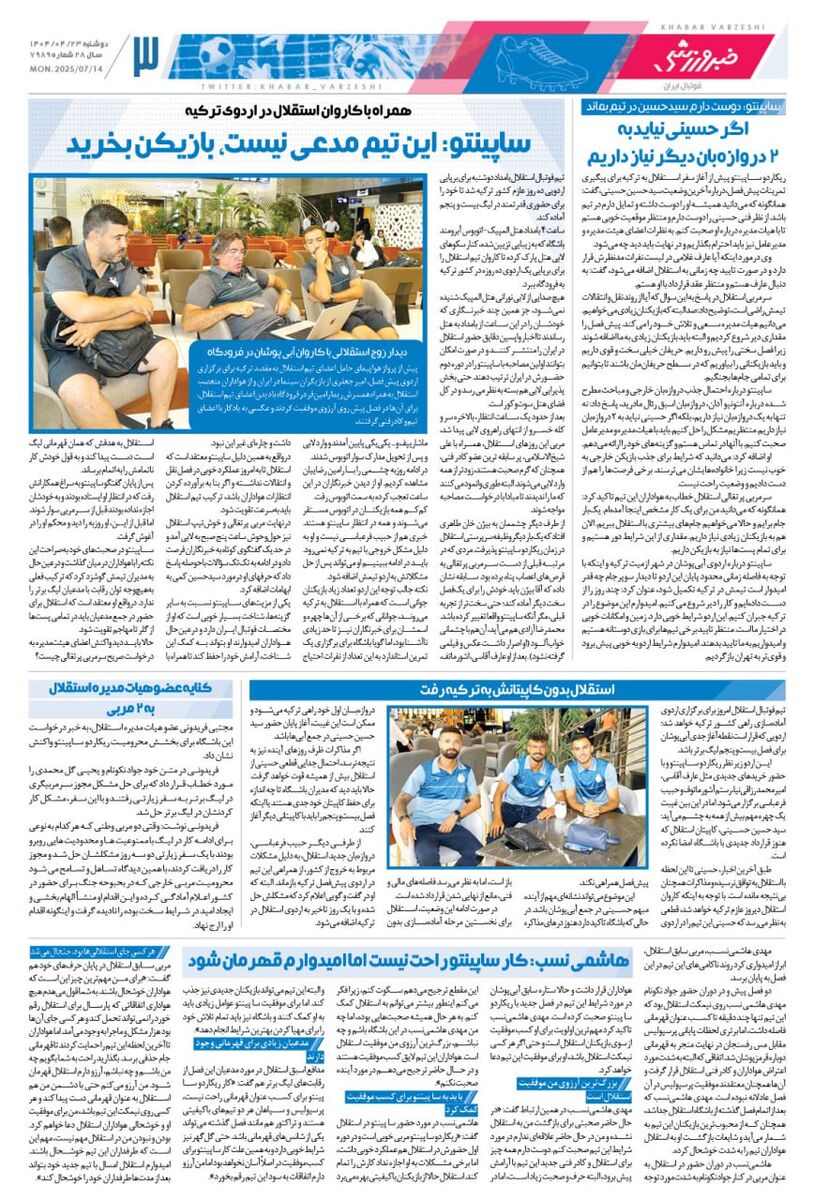 هشدار ساپینتو به استقلال: این تیم مدعی نیست، برایم بازیکن بخرید!/ روزنامه خبرورزشی را یک شب زودتر، رایگان در سایت خبرورزشی بخوانید